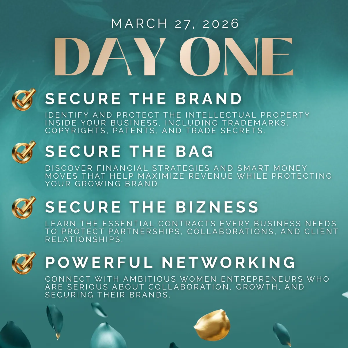 Expect laughs, learning moments, giveaways, and a room full of ambitious women entrepreneurs ready to secure their brands.